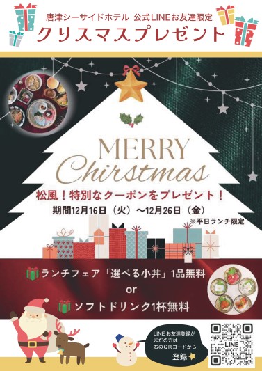 LINEお友だち登録で★松風クリスマスクーポンプレゼント★